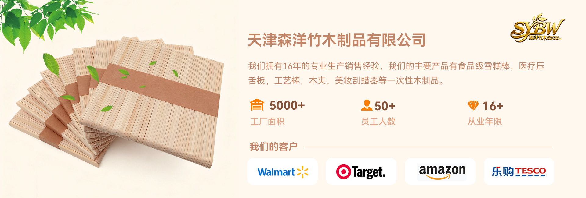 天津森洋竹木制品有限公司是一家拥有自营工厂的竹木制品专业供应商。公司位于中国沿海城市天津,交通便利。我们的"SYBW"品牌拥有16年专业生产经验,主营DIY玩具、冰淇淋棒、压舌板、木圆棒、木质手工夹、木蜡刮等产品的出口业务。我们拥有众多合作伙伴,其中包括沃尔玛、塔吉特、亚马逊和特易购等国际知名品牌。